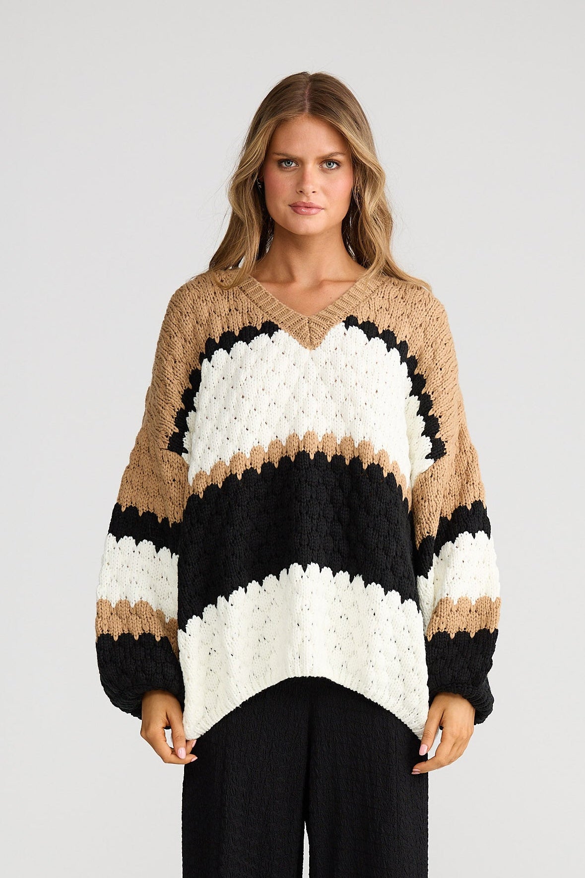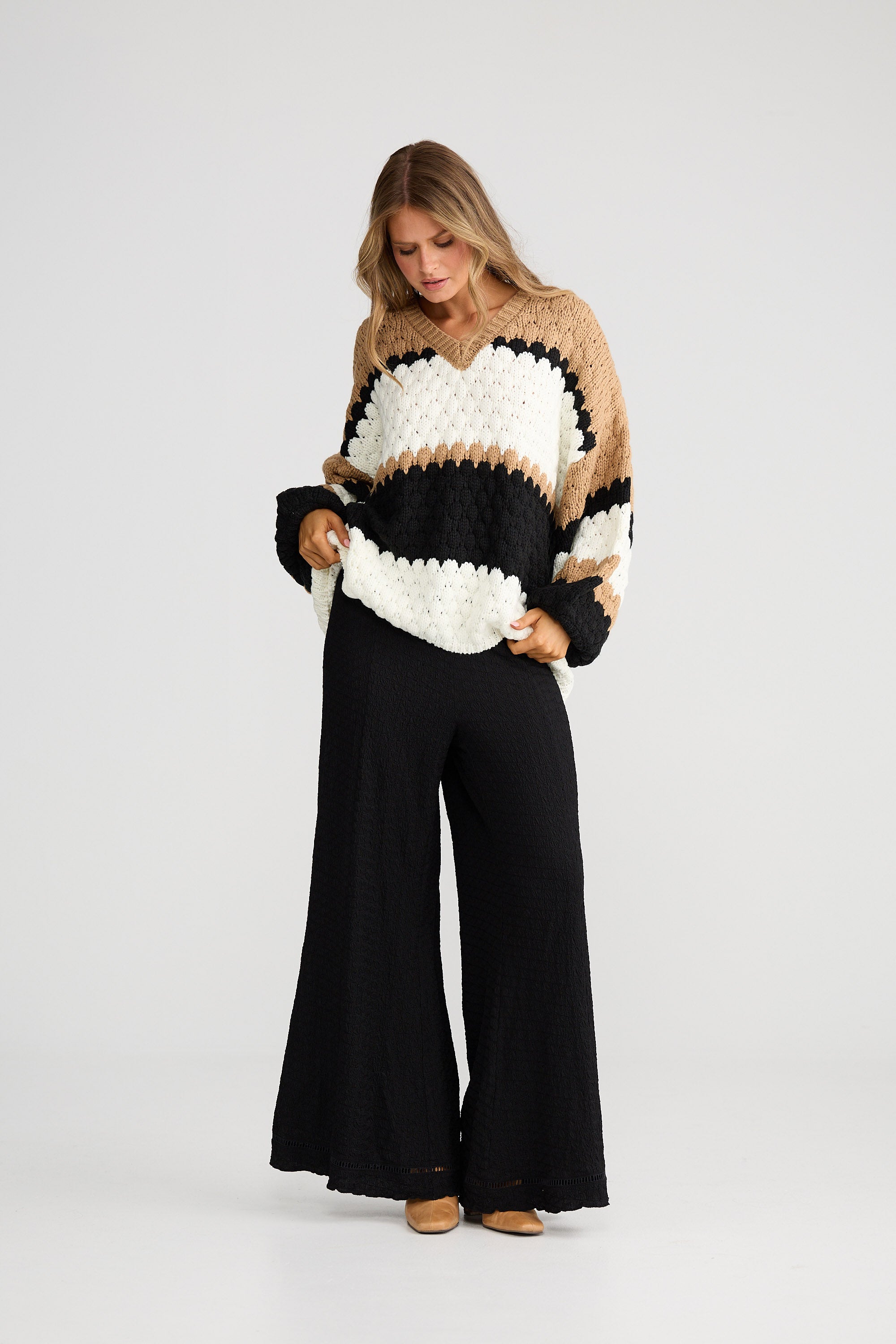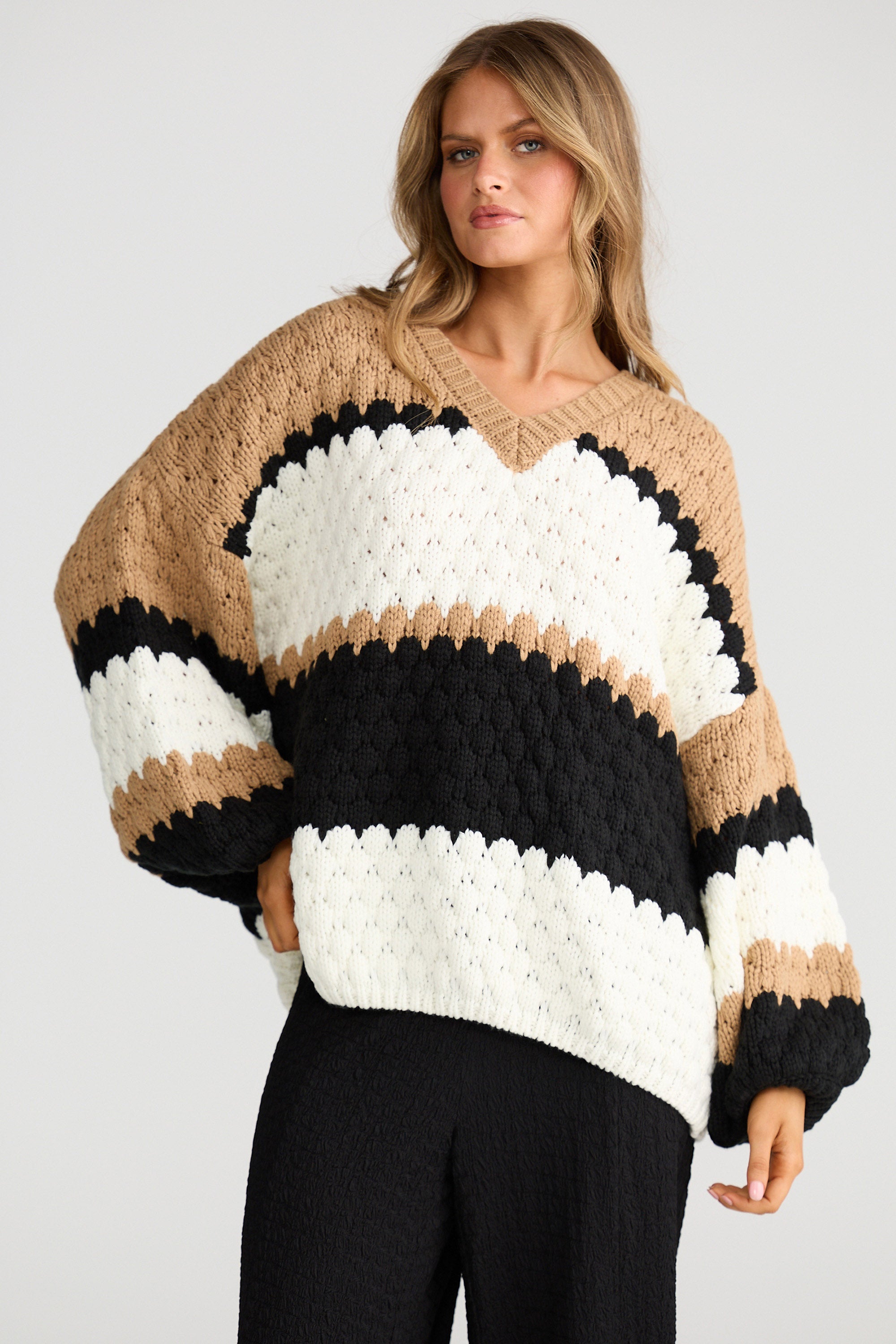 Airlie Knit-Black W Oat Stripe