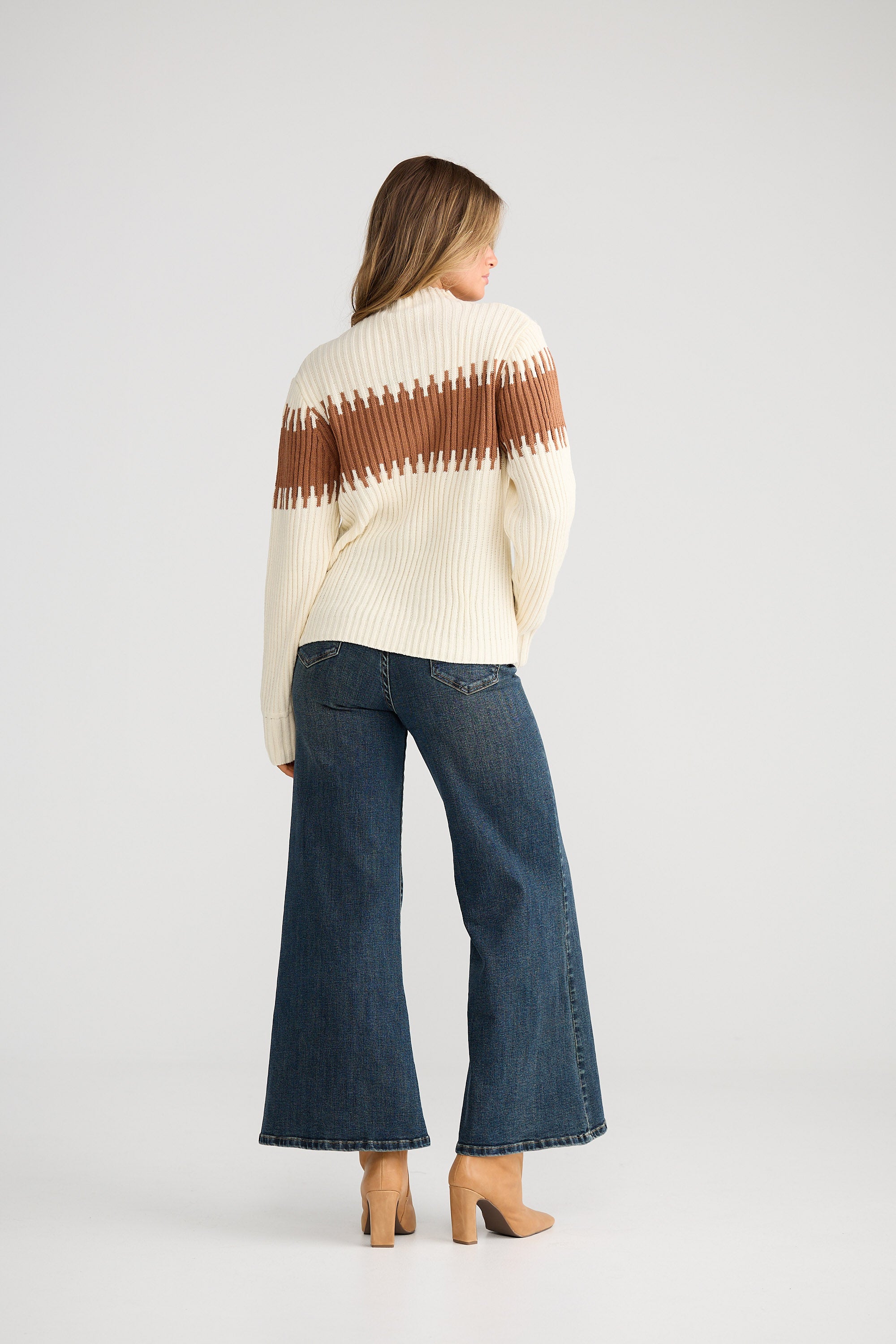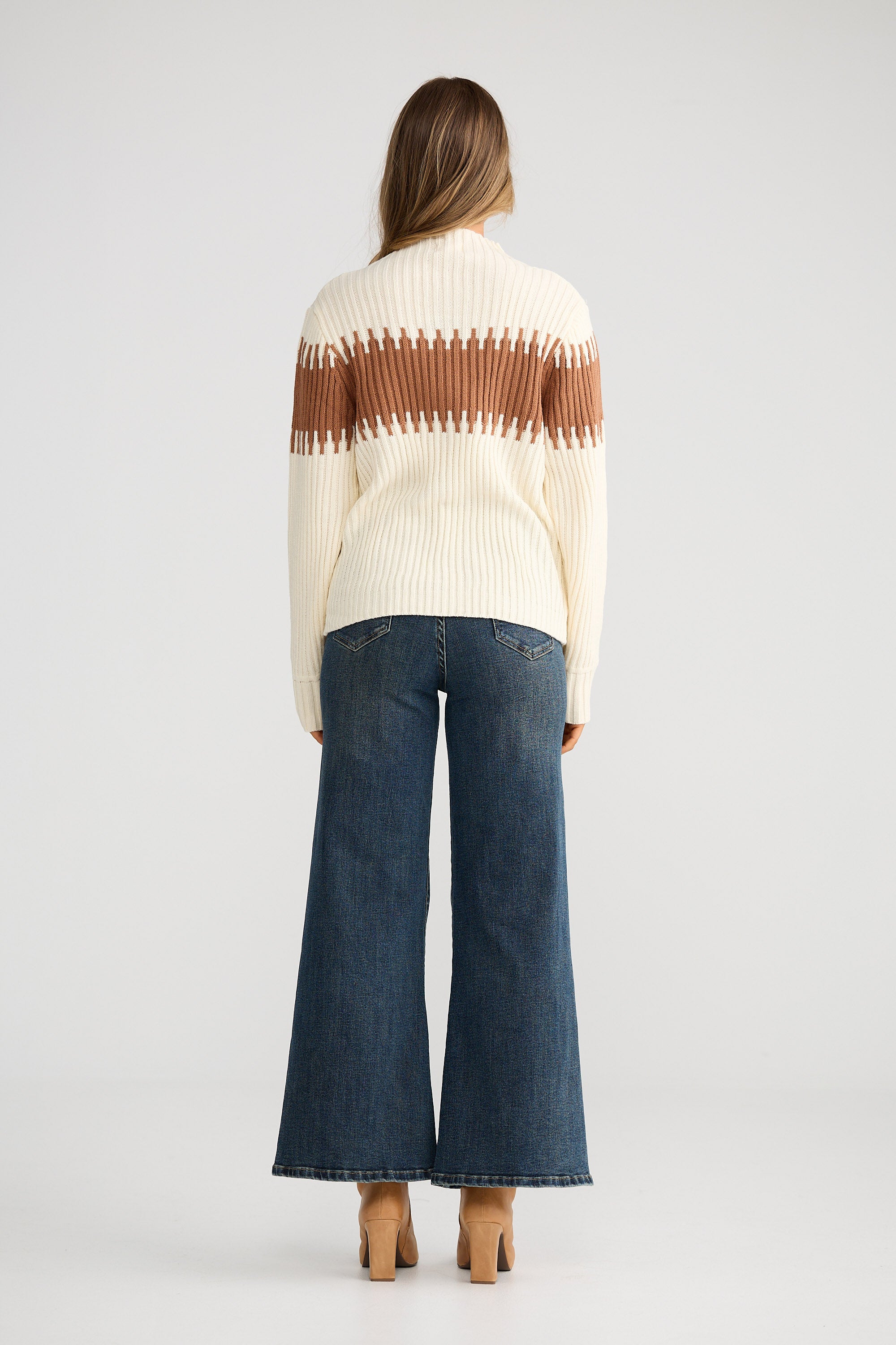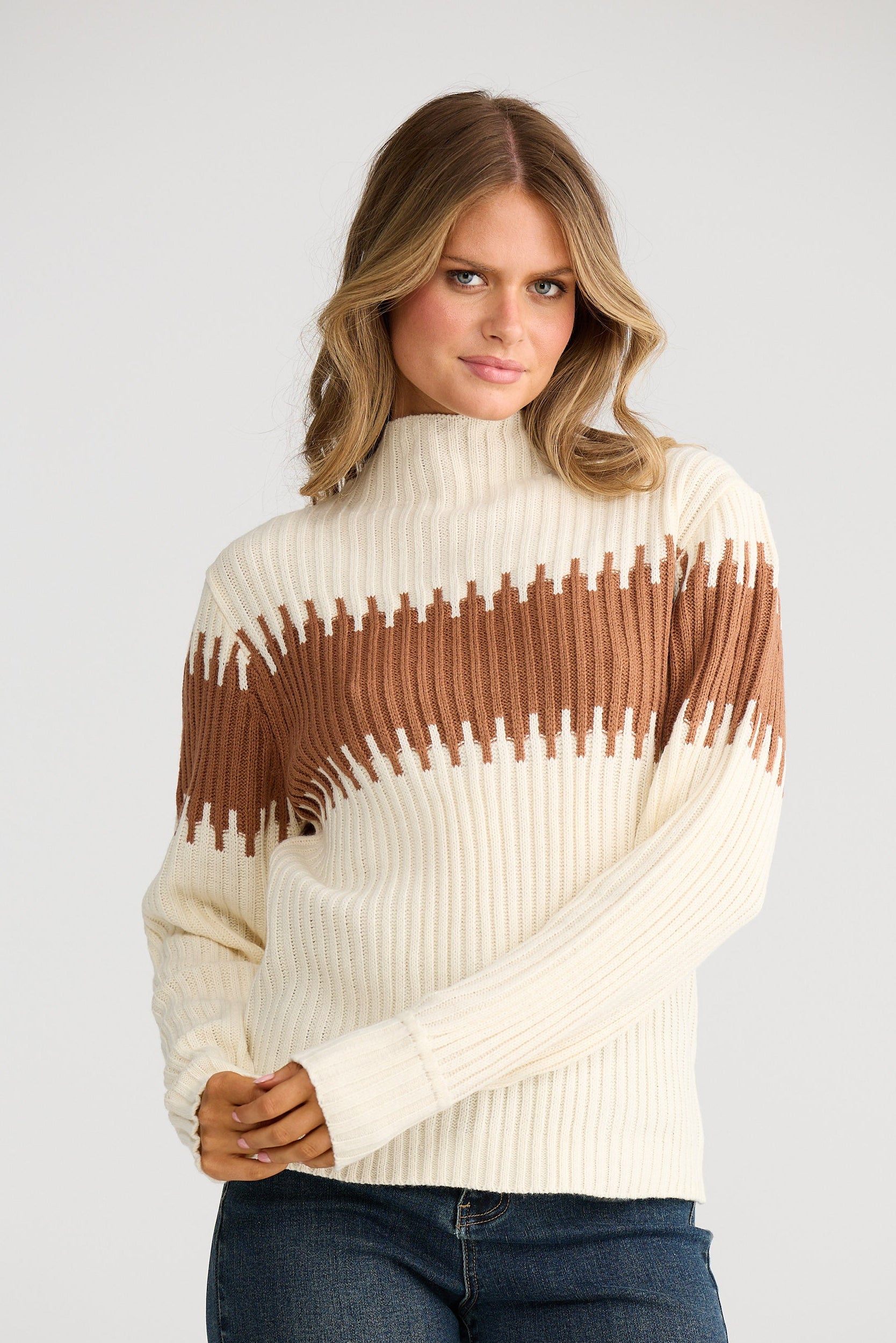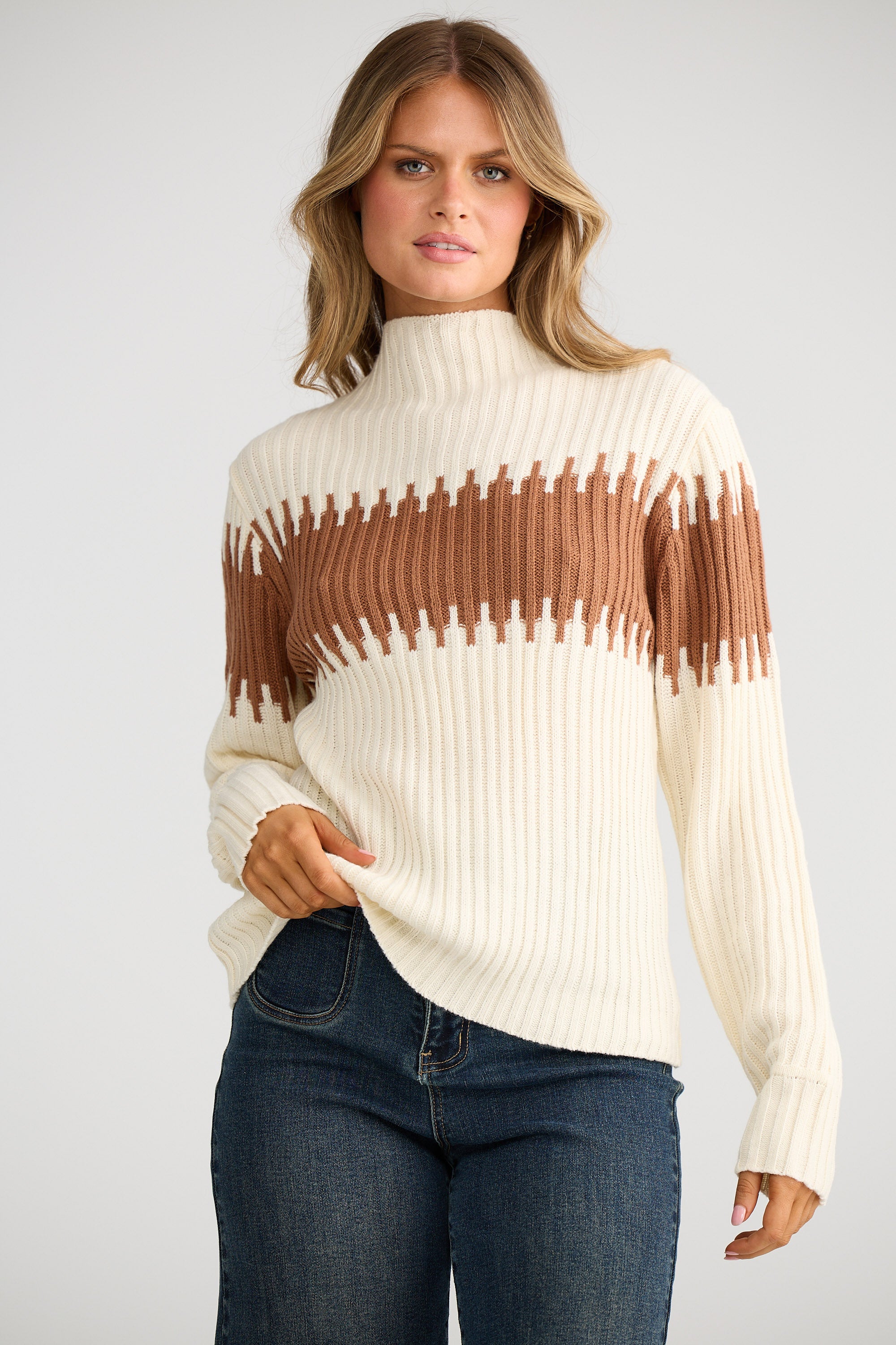 Dakota Mock Neck Knit-Cream W Sepia