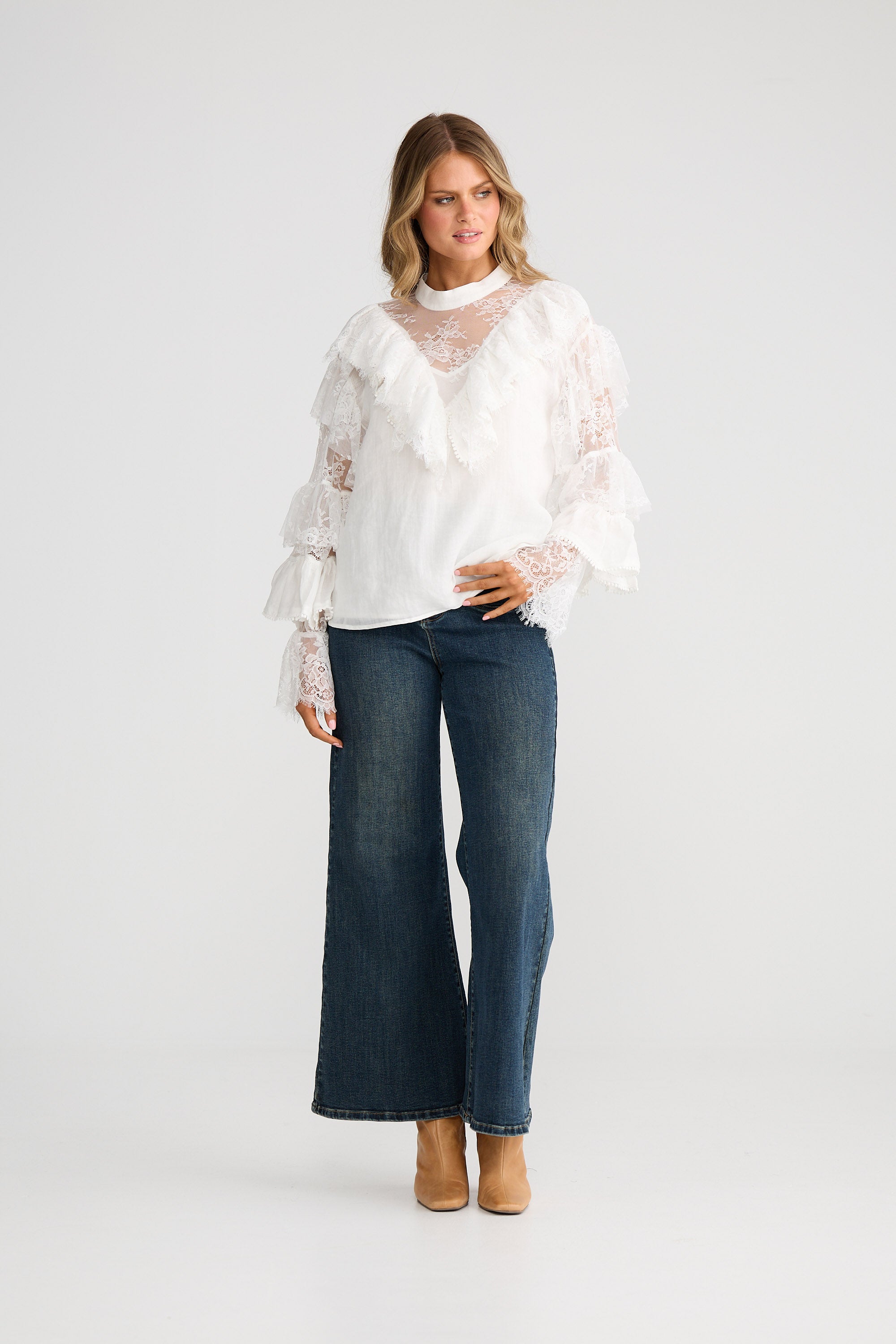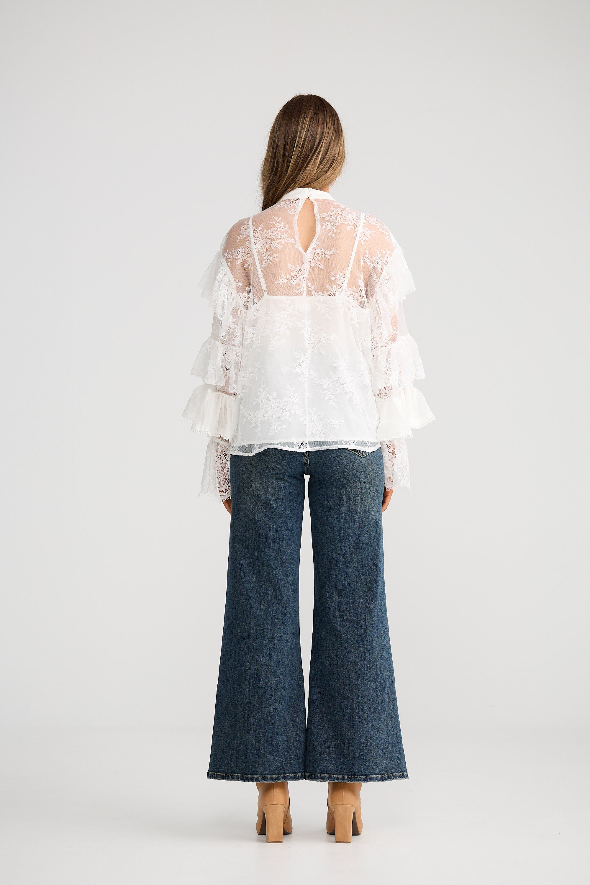 • Full bell sleeve with ruffles