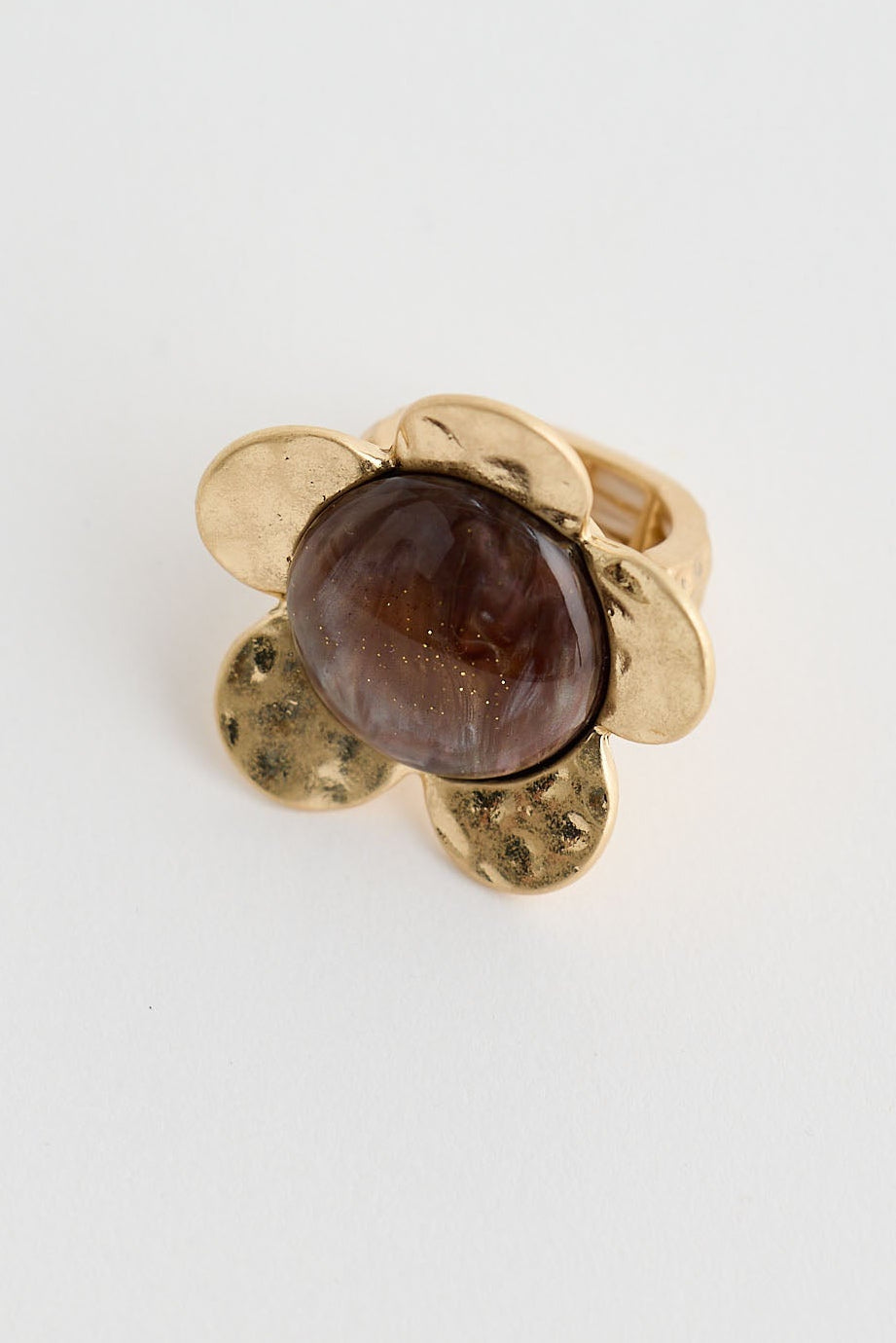 • Hammered gold-tone petals add an organic feel